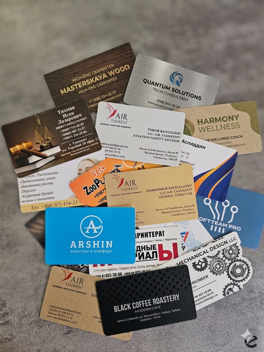 В terraprint.uz вы можете заказать визитки, которые будут работать на ваш имидж. Мы предлагаем не просто печать, а полную свободу выбора материала и отделки.